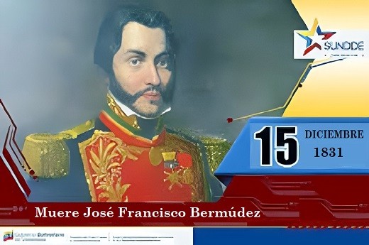 1831. Muere asesinado en Cumaná el prócer de la independencia, General José Francisco Bermúdez, quién tuvo una destacada labor en las campañas militares de Oriente. José Francisco Bermúdez, queriendo castigar una falta social infundada por parte de un joven llamado Rafael Berrizbeitia, recibe el disparo fatal de éste y muere en el acto.