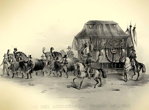 1842: Llegan a Caracas los restos mortales del Libertador conducidos desde Santa Marta al Puerto de La Guaira y son sepultados en la cripta de la Santísima Trinidad de la Catedral de Caracas, templo que también albergaba los cuerpos de sus padres, sus dos hermanas, y María Teresa del Toro y Alayza.