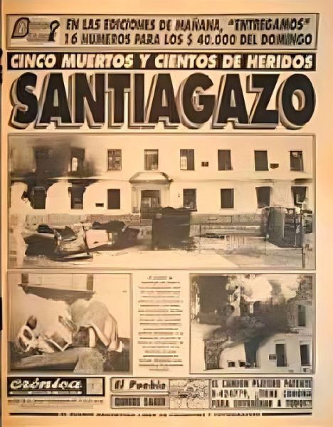1993: En Santiago del Estero, Argentina, se desata una revuelta popular en contra de las medidas neoliberales de Carlos Menem, conocida como el Santiagueñazo.