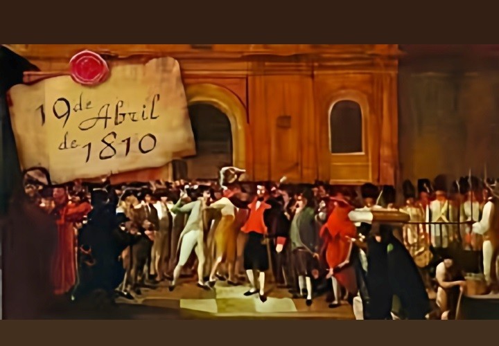 1810: Se inicia el proceso de Independencia de Venezuela del Reino de España. Tras la renuncia de Vicente Emparan como Capitán General de Venezuela, se forma la Junta Suprema de Caracas y se firma el Acta del 19 de Abril de 1810, actuando en nombre de Fernando VII, rey depuesto de España, y en desobediencia a José I Bonaparte, nuevo rey de España nombrado por Napoleón Bonaparte. Se convoca a Cabildo Abierto para tomar medidas en vista de la situación provocada en España por la rebelión contra el rey francés José Bonaparte.